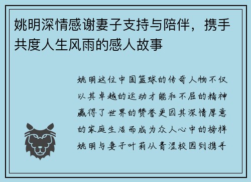 姚明深情感谢妻子支持与陪伴,携手共度人生风雨的感人故事